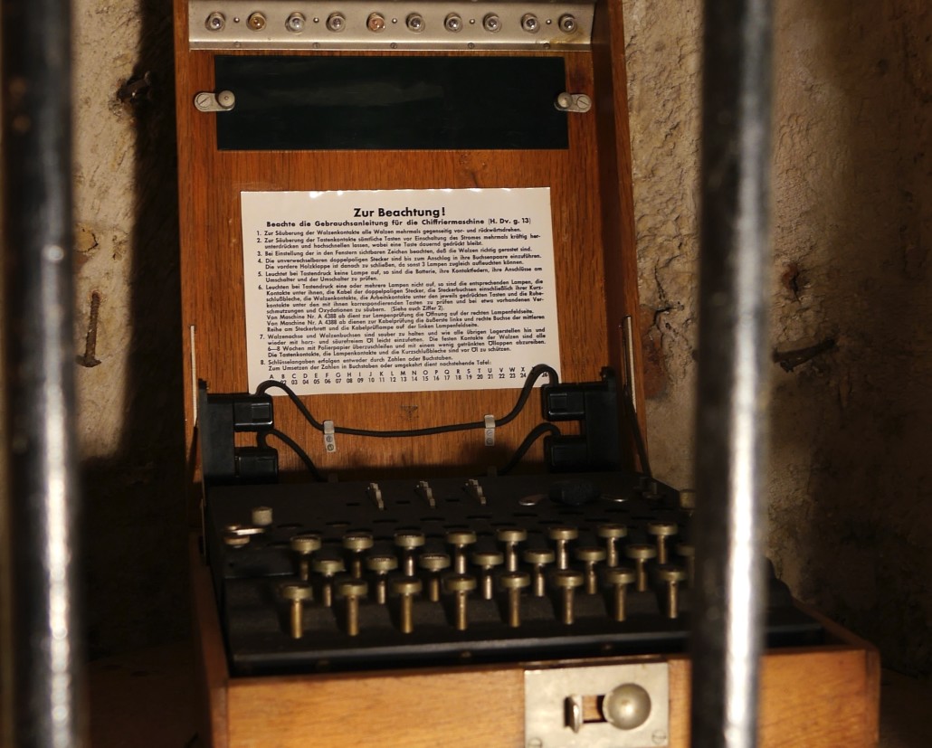 Enigma est une machine électromécanique inventée par l’Allemand Arthur Scherbius dans les années 1920. Elle est devenue célèbre après son utilisation pendant la Seconde Guerre mondiale. Enigma était réputée inviolable selon ses concepteurs mais on a observé des failles, avant même le début de la Seconde Guerre mondiale. Le terme désigne en réalité une famille de machine : il n’existe pas une seule machine Enigma, mais plusieurs, chacune avec des petites variantes. Comment en effet créer un code secret si tout le monde a le même modèle ?